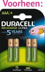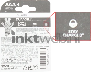 De nieuwste generatie oplaadbare batterijen van het topmerk Duracell. 4x AAA (900mAh). Voltage: 1,2 Volt.