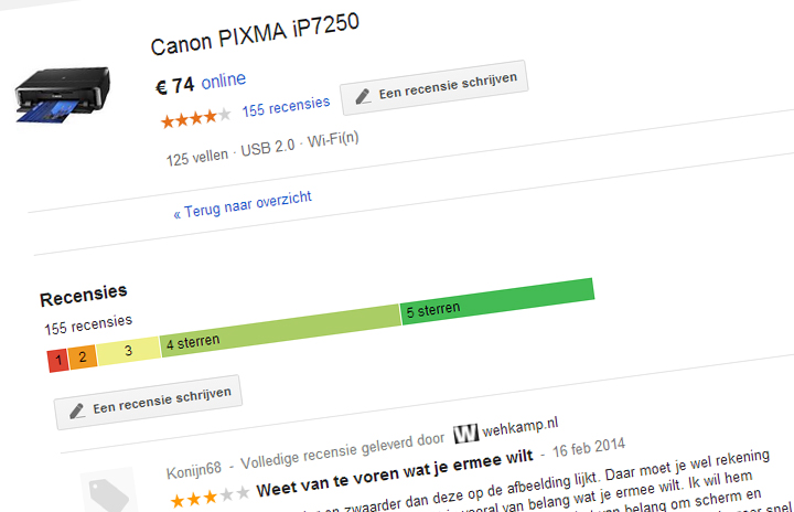Zoek in plaats daarvan naar recensies van mensen die de printer al hebben gekocht en echt een mening over kunnen geven. Dit kan bij de desbetreffende webshop zijn maar ook een YouTube video of forum bericht. Het makkelijkst is om te zoeken in Google naar “[naam printer] review”.
