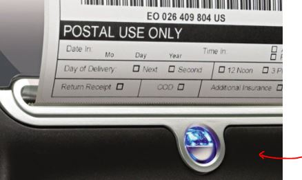 Heb je een nieuwe labelprinter? Zo nee, ga dan naar de volgende stap. Zo ja, druk dan eerst op de form-feed knop. Dit is de blauwe knop aan de voorkant van de Dymo labelprinter. Met deze knop kun je de labels uitwerpen die in de printer zitten en het binnenwerk beschermen tijdens het vervoer.