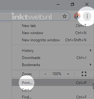Je kan ook de snelkoppeling Ctrl + P indrukken om te printen.
