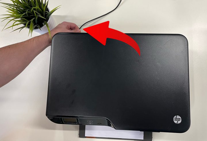 - Haal nu de stroomkabel aan de achterkant van de printer eruit.