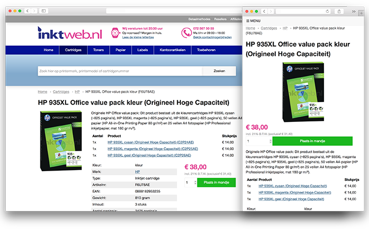 Naast dat de website er moderner uitziet is de website nu ook responsive. Dit betekent dat de website zich automatisch aanpast aan de grootte van het beeldscherm. Zo kun je een stuk eenvoudiger bestellen vanaf je smartphone zonder in en uit te zoomen en past de website perfect op het scherm van je tablet zonder horizontaal te scrollen.