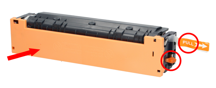 Deze materialen zijn meestal te herkennen aan hun felle kleuren. Trek deze eerst voorzichtig van de toners- en haal het klepje van de afbeeldingsdrum af voordat je de toner in je printer installeert.