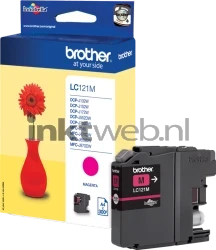 Originele inktcartridge van het merk Brother, de LC-121M. De kleur is magenta. Capaciteit: 300 pagina's.