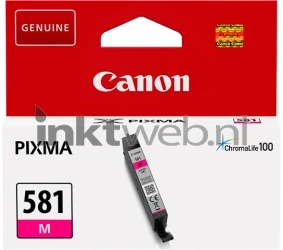 Originele Canon CLI-581 inktcartridge (2104C001) in de kleur magenta. Geschikt voor printers uit de PIXMA serie. Print foto's & documenten op zeer hoge kwaliteit met levensechte kleuren.