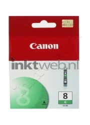 Originele Canon CLI-8G inktcartridge groen. De kleuren rood en groen zijn cartridges voor de meest geavanceerde printers uit deze CLI-8 serie. Controleer goed of deze kleuren in uw printer zitten (Pro 9000).