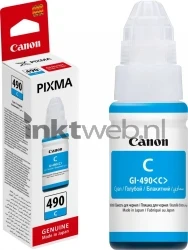 Originele Canon GI-490 cyaan inktcartridge (0664C001). De Canon fles print dynamische afbeeldingen met scherpe tekens. Je kunt aflezen hoeveel inkt er nog in de cartridge zit. Je kunt gemakkelijk de fles bijvullen.