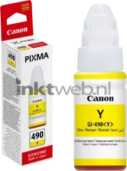 Originele Canon GI-490 inktcartridge (0666C001). Lees ten alle tijden af wat het inktniveau is en vul hem daarna zelf bij.