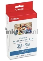 Canon SELPHY cartridge en papier. Geschikt voor 36 prints van creditcardformaat. Dit formaat van 54 x 86 mm (2,1 x 3,4 inch) is perfect voor kleinere lijsten en voor foto's die je in je portemonnee of tas bewaart.