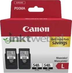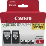 Originele Canon PG-540L Twinpack zwart (5224B020). Met deze cartridges print je zonder problemen op de hoogste kwaliteit. De zwarte inkt is op pigmentbasis. Zo krijg je namelijk de diep zwarte kleur die Canon altijd levert!