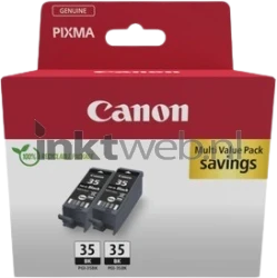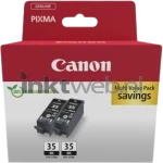 Ben jij alleen op zoek naar zwarte inkt? Bestel dan de Canon PGI-35 twinpack zwart bij Inktweb.nl! Deze beschikt over een capaciteit van ongeveer 380 pagina's en heeft een inhoud van 18 ml. Daarbij ben je verzekert van hoge kwaliteit prints met scherpe randen.