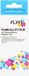 Compatible CLI-571XL magenta. Deze FLWR cartridge is gemaakt van 100% nieuwe onderdelen waardoor deze garant staat voor uitstekende kwaliteit. Print documenten met scherpe teksten en afbeeldingen met heldere kleuren. Uiteraard zijn je afdrukken ook vrij van strepen, vlekken en andere narigheid en kan je het niveau bijhouden via de computer/printer dankzij de slimme, reeds geïnstalleerde, chip. Kortom de ideale vervanging voor de originele Canon CLI-571 en CLI-571XL.