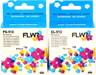Deze multipack cartridges bestaat uit de FLWR PG-512 zwart en de CL-513 kleur cartridges. De cartridges hebben een totale inhoud van 32 ml.. De PG512 zwart is gevuld met 20 ml. en CL513 kleur is gevuld met 12. ml inkt. Deze cartridges printen net als de originele cartridges je documenten uit met scherpe lijnen en levensechte kleuren. Je zult geen vegen, strepen of andere ongewenste vormen van inkt ervaren, terwijl je voor deze cartridges minder betaalt.
