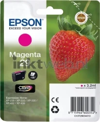Epson 29 - Inktcartridge / Magenta. De Claria Home Ink levert scherpe, heldere tekstdocumenten en glanzende foto's van fotolabkwaliteit. Ideaal voor betaalbare en betrouwbare afdrukken.