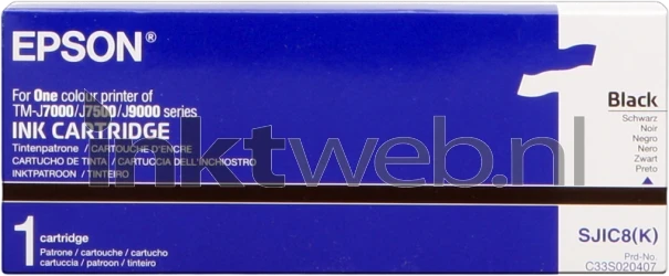 Origgnnle Epson S020407 inktcartridge met standaard capaciteit in de kleur zwart. Onder andere geschikt voor de TM-J7000 en de TM-J7500.