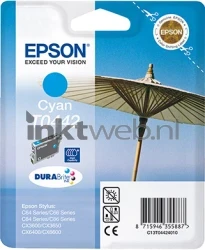 De Epson T0442 hoge capaciteit inktcartridge cyaan bevat DURABrite Ultra inkt op pigmentbasis. Deze inkt vlekt niet, is waterbestendig en beter bestand tegen zonlicht.