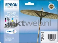 DuraBrite Quad Pack T0441,T0452,T0453,T0454. De kleurencartridges T0452, T0453 en T0454 hebben een capaciteit van 600 pagina's. Zwart (T0441) heeft een capaciteit van 250 pagina's.