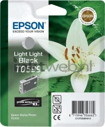 De Epson T0599 inktcartridge licht licht zwart heeft inkt op kleurstofbasis. Deze cartridge heeft de Intellidge chip, waardoor U het inktniveau in de gaten kunt houden.