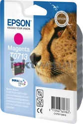De Epson T0713 inktcartridge magenta heeft Epson DURABrite Ultra inkt op pigmentbasis. Deze cartridge is goed bestand tegen vervagen door zonlicht en andere atmosferische omstandigheden. Bovendien vlekken de afdrukken niet en zijn ze waterbestendig.