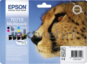 Deze Epson T0715 multipack bevat alle drie de kleurencartridges en één zwarte cartridge. Alles wat u nodig heeft om direct te kunnen printen. Daarnaast zijn deze cartridges erg gemakkelijk om te installeren; u kunt ze simpelweg in uw printer klikken.