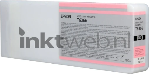 De Epson T6366 inktcartridge vivid licht magenta bevat Epson Ultrachrome HDR inkt. De T636 inktset heeft het grootste kleurenbereik op de huidige markt. De LUT-technologie van de printer optimaliseert het kleurenbereik en zorgt voor vloeiende kleurovergangen. Deze cartridge heeft een hoge capaciteit en is zeer geschikt voor grootverbruikers.