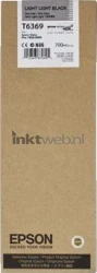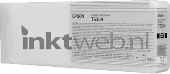 De Epson T6369 inktcartridge licht licht zwart bevat Epson Ultrachrome HDR inkt. De T636 inktset heeft het grootste kleurenbereik op de huidige markt. De LUT-technologie van de printer optimaliseert het kleurenbereik en zorgt voor vloeiende kleurovergangen. Deze cartridge heeft een hoge capaciteit en is zeer geschikt voor grootverbruikers.