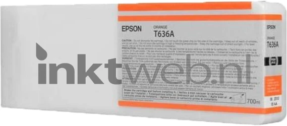 De Epson T636A inktcartridge oranje bevat Epson Ultrachrome HDR inkt. De T636 inktset heeft het grootste kleurenbereik op de huidige markt. De LUT-technologie van de printer optimaliseert het kleurenbereik en zorgt voor vloeiende kleurovergangen. Deze cartridge heeft een hoge capaciteit en is zeer geschikt voor grootverbruikers.