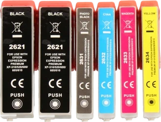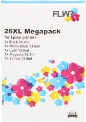 FLWR compatible Epson 26XL multipack extra veel inhoud van totaal 6 cartridges (sixpack).