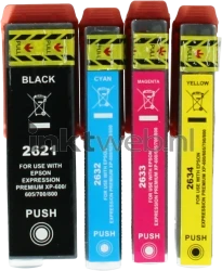 Deze multipack bestaat uit 4 cartridges in de kleuren zwart, cyaan, magenta en geel. Deze cartridges zijn ter vervanging van de originele Epson 26 cartridges en voorzien van een chip met inktniveaumeter. Dit betekent dat je direct, probleemloos, kan printen. De cartridges zijn gefabriceerd onder strenge (ISO) kwaliteitsnormen. Het is dan ook geen toeval dat onze inktcartridges bekend staan om de hoge kwaliteit en door vele klanten naar tevredenheid worden gebruikt.