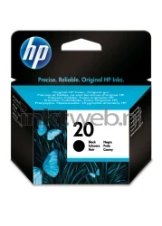 De HP 20 zwarte inktcartridge bevat door HP ontwikkelde inkt op pigmentbasis die scherpe, zwarte tekst, schitterende kleuren van fotokwaliteit en een uitstekende printkwaliteit produceert.
