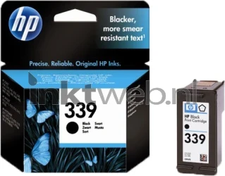 De HP 339 hoge capaciteit cartridge zwart met Vivera inkt produceert haarscherpe zwarte tekst en afbeeldingen van laserkwaliteit. De intelligente printfuncties waarborgen een gemakkelijke installatie, een probleemloze werking en schitterende resultaten met een uitstekende printkwaliteit.