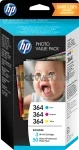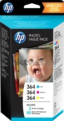 Originele HP 364 cartridges. Dit is de foto voordeelverpakking! Naast de 3 kleurencartridges (cyaan, magenta en geel) krijg je 50 vellen fotopapier van 10x15 cm (A6 fotopapier) van 250 g/m2.