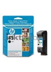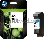 De HP 45 hoge capaciteit cartridge zwart met een resolutie van 600 x 600 dpi maakt professionele kleurenafdrukken mogelijk op een gewone printer. Zo krijgt je de hoogst mogelijke weergavekwaliteit met HP Deskjet, HP Photosmart, HP Designjet of HP Officejet printers op papier en transparanten. De inkt (HP45) op pigmentbasis met hoge dichtheid produceert scherpe zwarte tekst en afbeeldingen.
