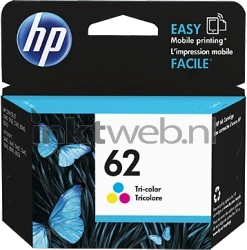 De standaard capaciteit HP 62 kleurencartridge (typenummer C2P06A) kan circa 165 pagina's printen op een paginadekking van 5%.