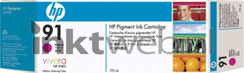 HP De HP 91 inktcartridge magenta, 775 ml, met Vivera inkt levert consistente resultaten van hoge kwaliteit met briljante kleuren, scherpe lijnen en een uitzonderlijke lichtbestendigheid. Originele HP cartridges waarborgen probleemloze printprestaties.
