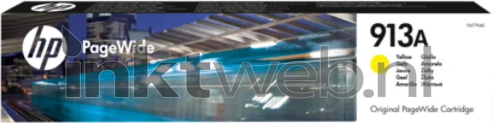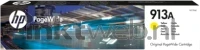 De gele HP 913A inktcartridge. Deze cartridge beschikt over een PageWide technologie, dit zorgt ervoor dat er geprint kan worden over de hele pagina breedte. Deze cartridge beschikt over een inhoud van 37 ml. inkt. De cartridge heeft een printcapaciteit van ongeveer 3000 pagina's.