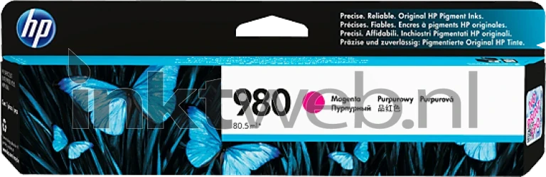 HP 980 inktcartridges met HP pigmentinkten zijn geformuleerd om kleurendocumenten te produceren voor maximaal de helft van de kosten per pagina van laserprinters. Houd uw HP Officejet Enterprise printer uitvoeren op topsnelheid om consistente, duurzame prints leveren
