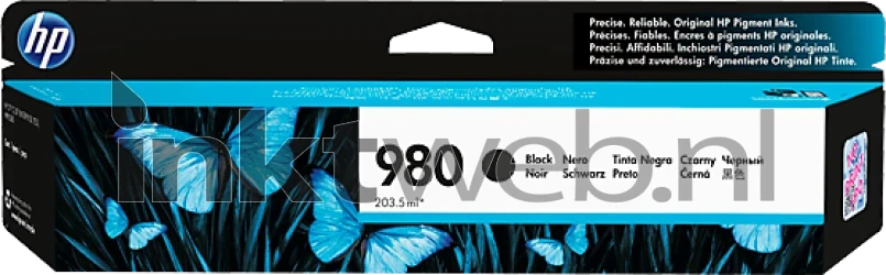 HP 980 inktcartridges met HP pigmentinkten zijn geformuleerd om kleurendocumenten te produceren voor maximaal de helft van de kosten per pagina van laserprinters. Houd uw HP Officejet Enterprise printer uitvoeren op topsnelheid om consistente, duurzame prints leveren