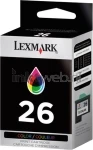 Lexmark 27 met drie kleuren. Deze cartridge heeft een standaard capaciteit. Lexmark 10N0227 is vervangen door 10NX227E.