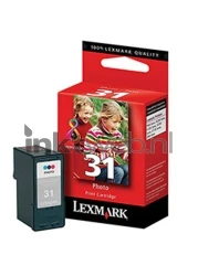 De Lexmark 31 kleur is ideaal voor het afdrukken van Uw eigen foto's. Deze cartridge bevat de kleuren foto zwart, licht magenta en licht cyaan. Samen met de kleuren cartridge heeft de printer dan 6 kleuren die een echte fotokwaliteit geeft. Gebruik voor het afdrukken van tekst en afbeeldingen de cartridge combinatie zwart en kleur en voor het afdrukken van foto's de cartridge combinatie foto en kleur