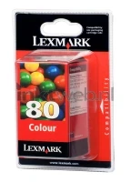 Lexmark cartridge Nr. 80 met drie kleuren. Deze cartridge heeft een standaard capaciteit van 275 pagina's.