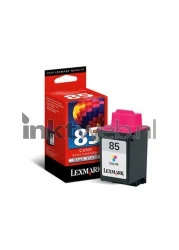 Lexmark cartridge Nr. 85 met drie kleuren. Deze cartridge heeft een hoge capaciteit en is geschikt voor mensen die veel printen. De 12A1985 levert een perfecte afdrukkwaliteit met niet-vervagende inkt op basis van geconcentreerde verf met kleine inktdruppeltjes voor een levendige kleur, helderheid en detail voor prachtige foto's en scherpe afbeeldingen.