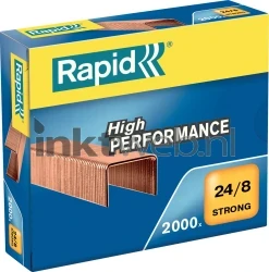 Rapid nietjes 24/8 verkoperd. Deze nietjes zijn van staal en zijn te gebruiken voor de standaard nietmachines. Deze doos bevat 2000 stuks.