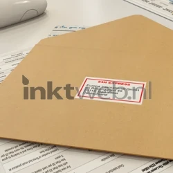 Deze op het moment unieke label geeft de mogelijkheid om zowel zwart als rood te printen op de witte label.