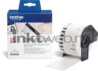 Brother DK-22225 thermische labelrol. Breedte 54mm en een doorlopende lengte van 30 meter. Door de doorlopende tape is het ideaal voor labels van verschillende lengtes, bijvoorbeeld voor dossiers, mappen of bezoekerspassen. Deze papiertape (zwart op wit papier) bevat een niet permanente lijmlaag.