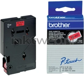 Brother lettertape TC-401 zwart op rood, 12mm breed en 7,7 meter lang.