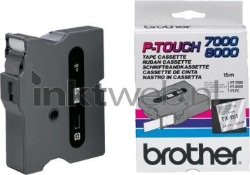 Originele gelamineerde Brother TX-151 tape. De kleur is zwart op transparant. De breedte is 24mm en de totale lengte is 15 meter.