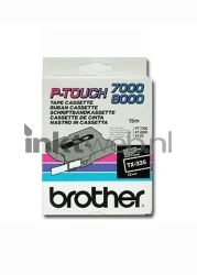 Originele gelamineerde Brother TX-335 tape. De kleur is wit op zwart. De breedte is 12 mm en de totale lengte is 8 meter.