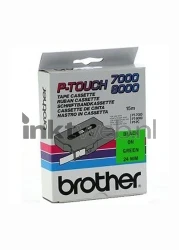 Originele gelamineerde Brother TX-751 tape. De kleur is zwart op groen. De breedte is 24 mm en de totale lengte is 15 meter.