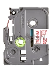 Originele Brother TZE-222 lettertape 9mm breed en 8 meter lang. Rood op witte tape.